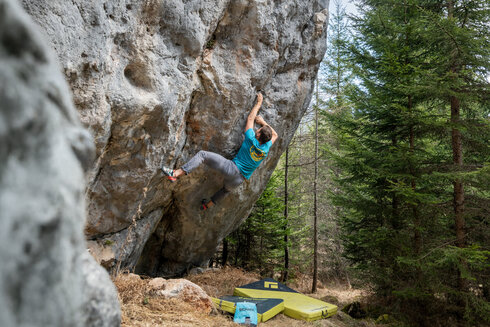 Bouldern bedeutet Klettern in Absprunghöhe – ohne Seil und Gurt, dafür mit einer weichen, tragbaren Matte (Crashpad). Während das Indoor-Bouldern in der Halle immer beliebter wird, suchen viele Kletterfans im Sommer den Fels. Draußen bouldern bedeutet: unmittelbare Natur, echtes Gestein, frische Luft – aber auch Verantwortung gegenüber der Umwelt. Ein paar Dinge solltest du beim Outdoor-Bouldern beachten: