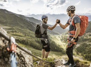 Character: Well-secured via ferrata in beautiful surroundings. Usually cool even in the summer months due to its northern orientation. Due to the waterfall, the lower part can often be wet from the wind. In addition, beware of falling ice in spring. The energy-sapping overhang in the exit area in particular should not be underestimated.
