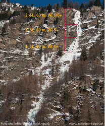 Descent: 50 minutes - via the icefall with Abalakov threads and abseiling at the trees.