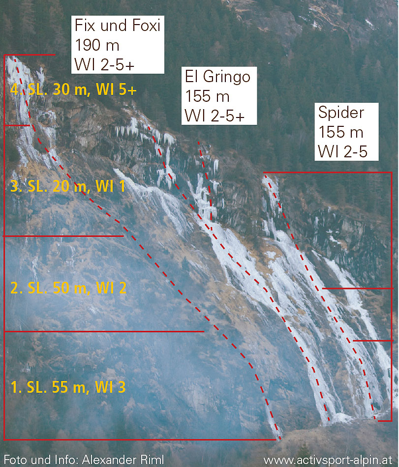 Drive via Oetz and Habichen to Tumpen. Turn right at the bus stop in Tumpen towards Gasthof Plattner and Armelen Hut. Park in the area of the elementary school. From there, walk out of the valley to the already visible ice shield. Turn left at a fram and from there directly to the icefall.