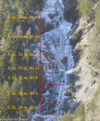 Drive via Oetz and Habichen to Tumpen. Turn right at the bus stop in Tumpen towards Gasthof Plattner and Armelen Hut. Follow the signs towards Armelen Hut. Park at the first hairpin bend. From there across a wooden bridge and then along the right side of the streambed up to the icefall