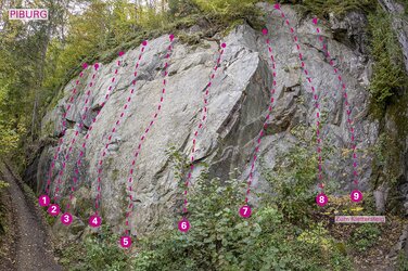 The Piburg climbing garden is located near the Piburg car park and can be reached on foot in a few minutes. 9 routes at up to 15 meters offer a good selection of easy tours, especially for beginners and recreational climbers.