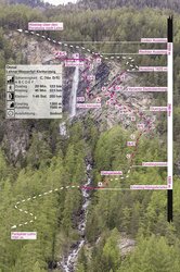 Nicely built at the waterfall with some special features, such as a difficult overhanging rock (E) which can also be circumvented.