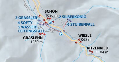 From the bridge follow the trail into the valley on the left side of the creek until the Pension Köhler. From here along the path further up into the valley until the entry point.