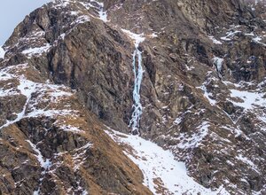 Extremely difficult, narrow icefall with mixed-climbing. First climbed by Eder Stefan and Hans Streng. Rock climbing gear (Camalot up to size 3, pitons and slings) is absolutely essential.