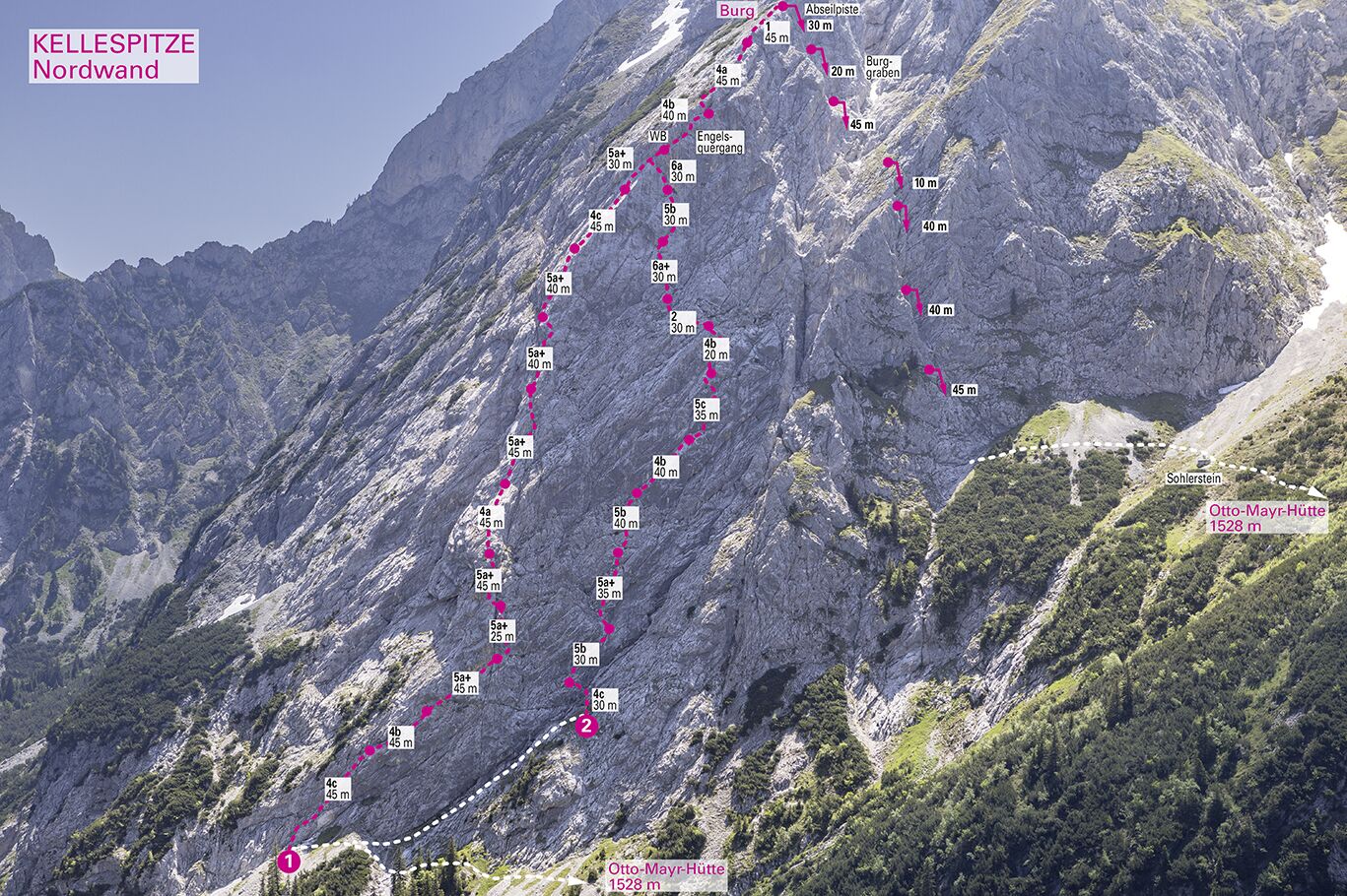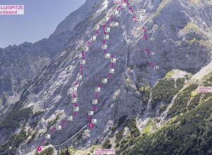 From the Musauer Alm continue in the direction of the Otto-Mayr-Hütte until the path to the Nesselwängler Scharte branches off to the left (30 minutes walk). Follow the path in the direction of the Nesselwängler Scharte until you can cross the path to the entrances (from Abzeig 20 - 30 minutes walk)