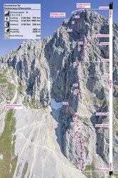 This ferrata is not only characterised by the difficulties, which are more in the upper range with passages up to difficulty level D, but also by its scenic attractions. The difficulties are in the lower part and on the summit wall.