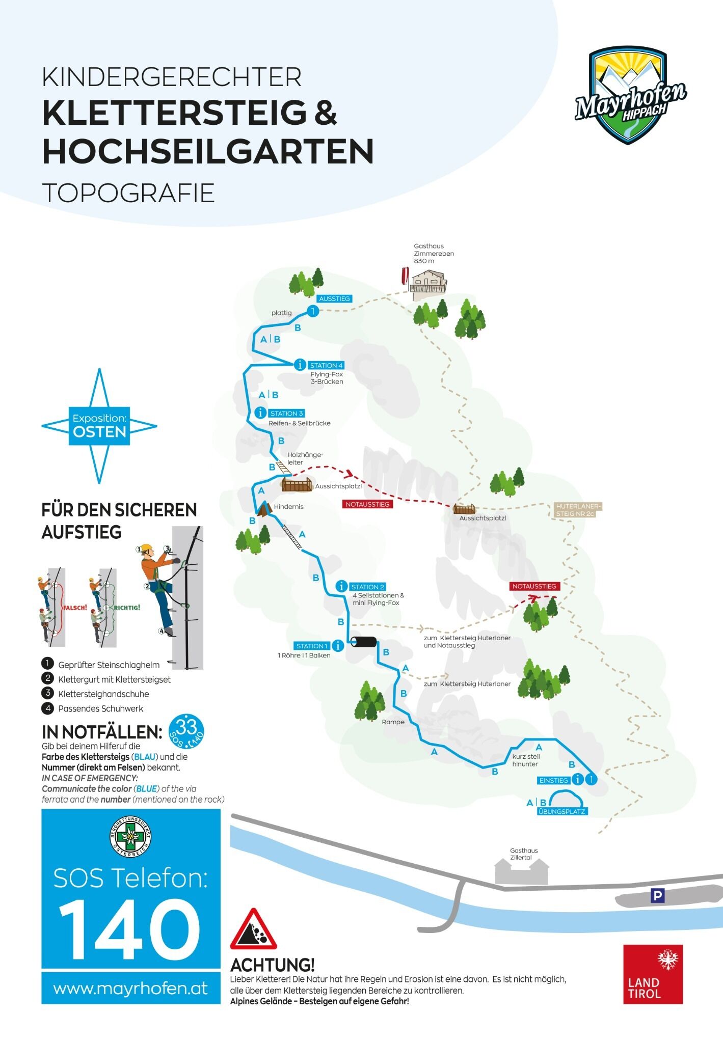 Der Kinderklettersteig im Zillertal ist speziell für Familien mit Kindern ab 6 Jahren konzipiert und bietet eine Mischung aus traditionellem Klettersteiggelände und Hochseilgartenelementen. Die Seile und Trittbügel sind entsprechend montiert, um das Klettern für Kinder zu erleichtern.