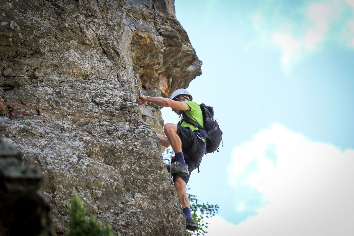 Ein außergewöhnlicher und rasanter Sportklettersteig im alpinen Bereich. Nur für die absoluten Spezialisten geeignet, und ohne Umgehungsmöglichkeit und Notausstieg!