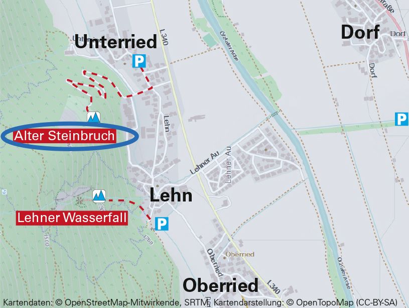 In der Nähe des Gewerbegebiets im Ortsteil Unterried parken.