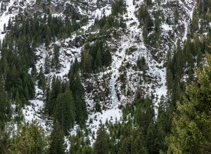 Köfels und parken dort. Nach überqueren der Brücke folgen Sie der Langlaufloipe weiter taleinwärts bis Sie unter dem Eisfall sind. Dann folgen Sie dem Bachbett bis zum Einstieg.