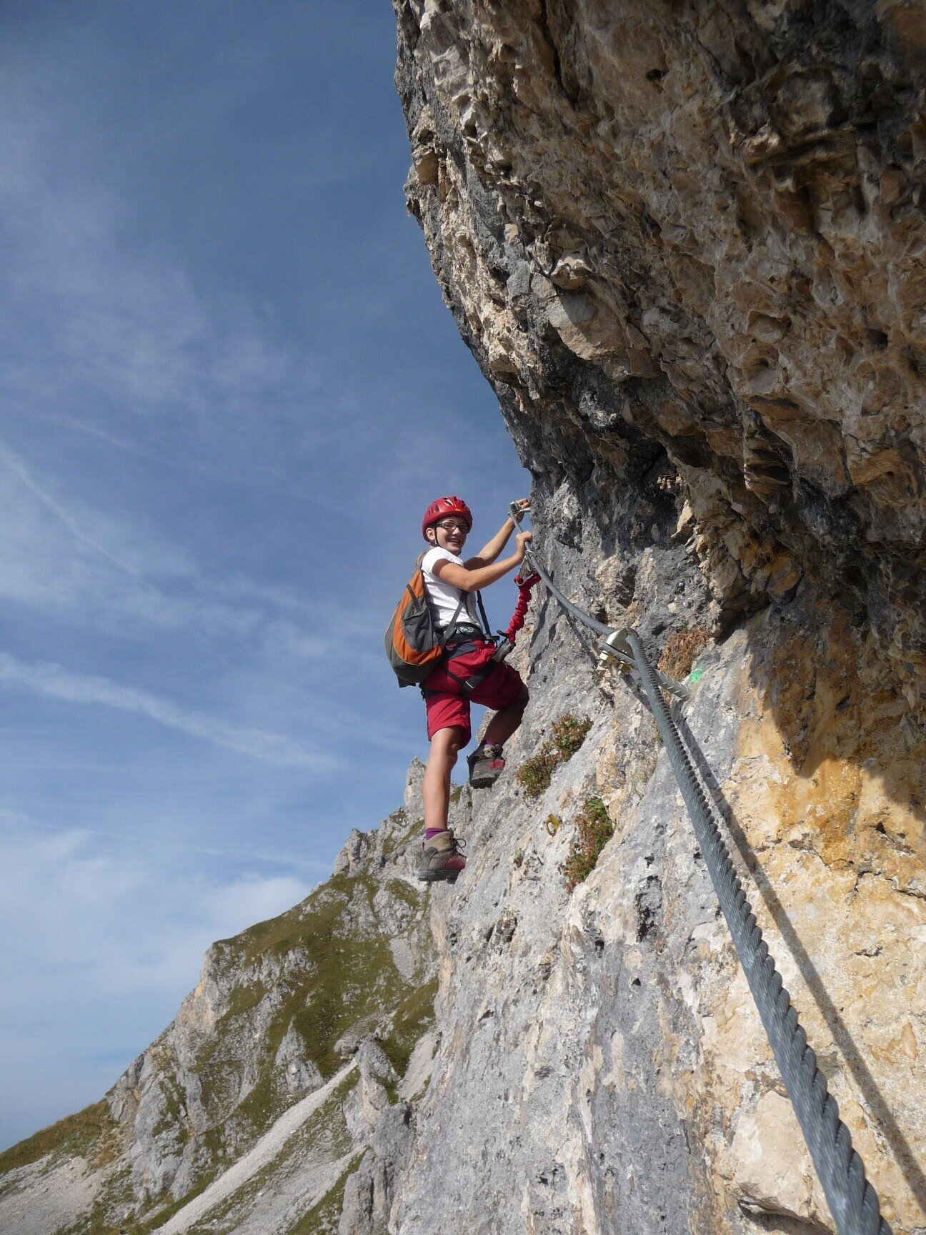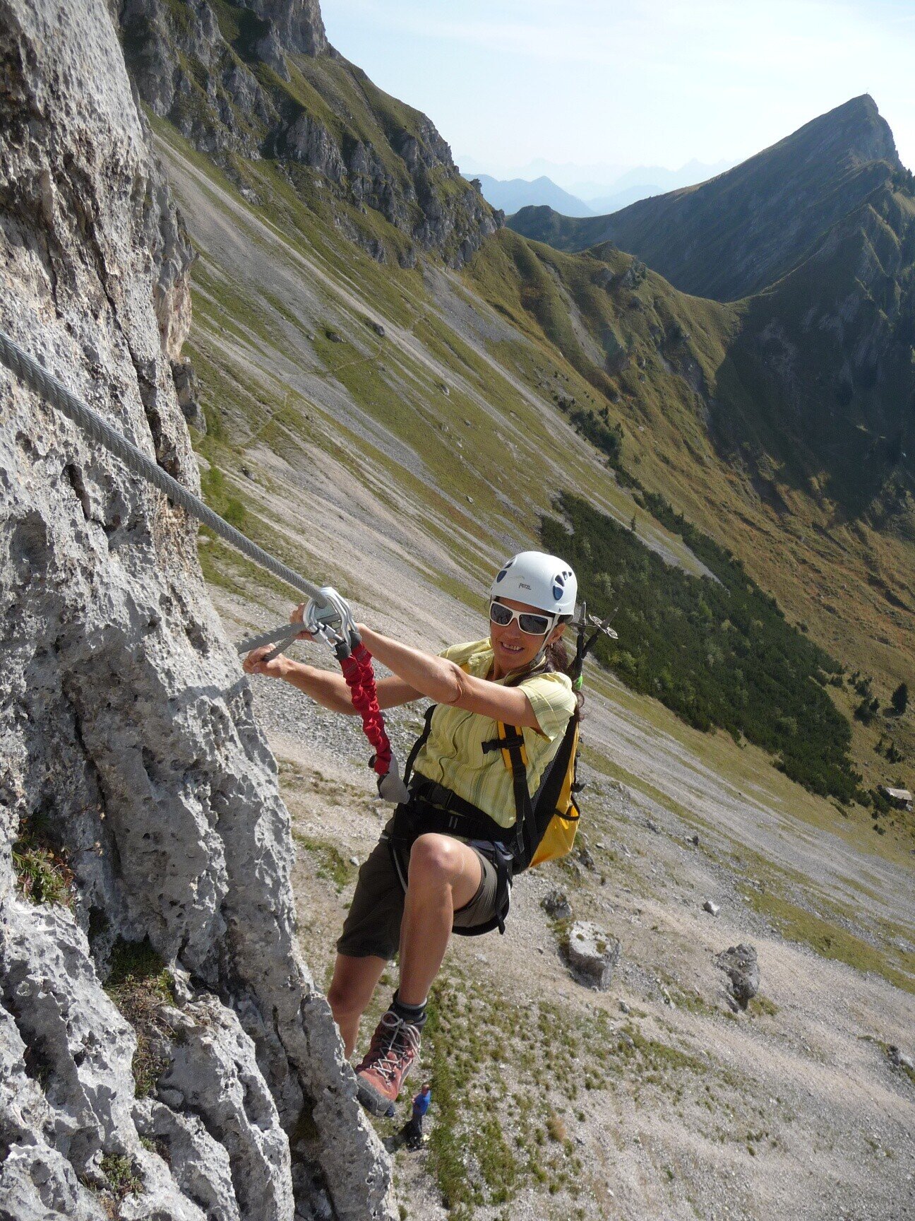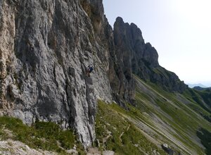 Vollständige Klettersteig-Ausrüstung (Klettersteigset, Gurt und Helm) auch für Geübte unbedingt empfohlen!